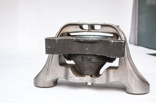 - Le plus courant est composé, comme décrit plus haut, de 2 parties métalliques entre lesquelles est inséré un bloc élastique, les parties métalliques étant reliées d’une part au châssis ou au berceau et d’autre part au moteur. Dans ce cas le silentbloc est relativement rigide et ne permet pas un déplacement important du moteur.